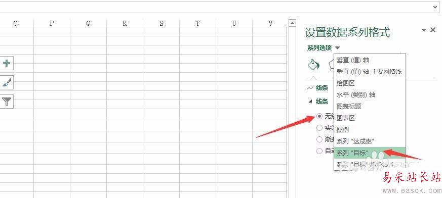 4、然后選擇原來的目標(biāo)線,線條顏色設(shè)置為無,如下圖所示: