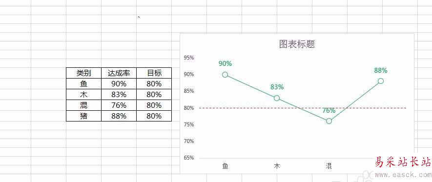 7、最后,通過一些圖表上的格式設(shè)置,就可以得到如下圖所示的好看的目標(biāo)線:
