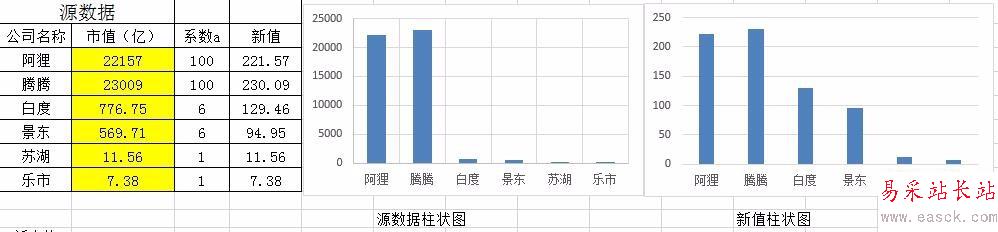 選中柱狀圖,右鍵添加數據標簽,雙擊某個標簽,編輯,將數字修改為源數據的值,并依次完成對所有標簽和坐標軸標簽和修改。選中X軸坐標標注>右鍵-選擇數據>選擇系列2>水平(分類)軸標簽-編輯>選擇原數據中公司名稱,得到新的X軸坐標標注。