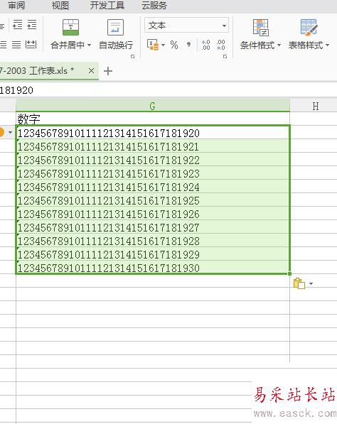 2、然后復制需要粘貼的數字,到已更改單元格格式的這一列當中。