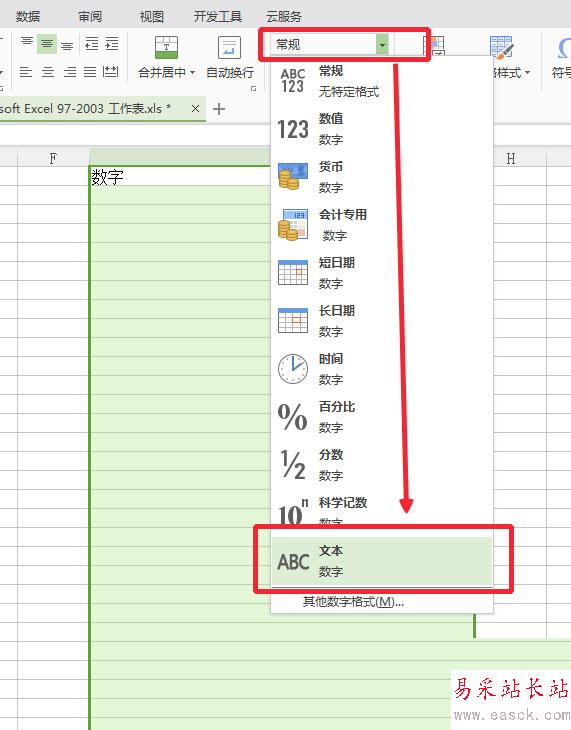 1、最簡單的方法,打開excel,直接選中需要更改的單元格,右鍵或者從菜單當中把需要的單元格格式設成文本格式。