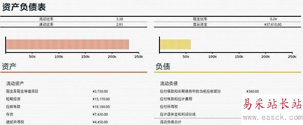 除了標準的資產負債表內容外,它還加入了流動比率、速動比率、現金比率、營運資金等幾個常用財務指標,非常實用。