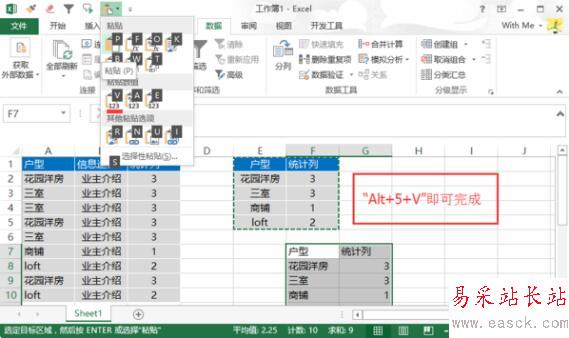3、添加后,將在快速功能區看到你的粘帖,我的位置是在第五位,每個人的順序不一樣,可以按“alt”查看。本次演示為“Alt+5+V”即可完成數值粘帖。此順序是可以調整的。