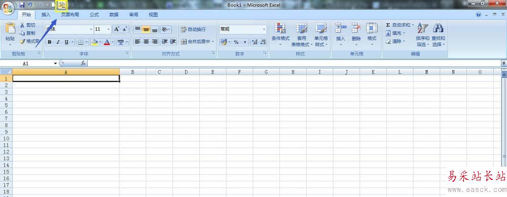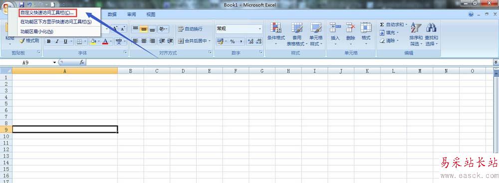 1、首先,打開Excel 2007軟件,然后在表格的最左上角有一個office按鈕,然后鼠標(biāo)右鍵點(diǎn)擊,如圖。然后在彈出的對話框選擇”自定義快速訪問工具欄“