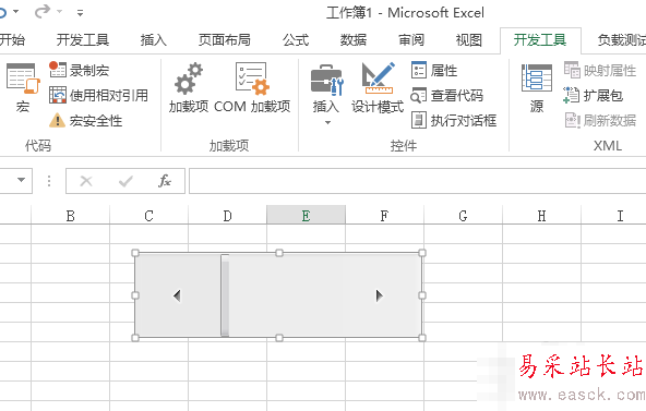 2.點擊開發工具-->插入-->滾動條(滾動條窗體控件);