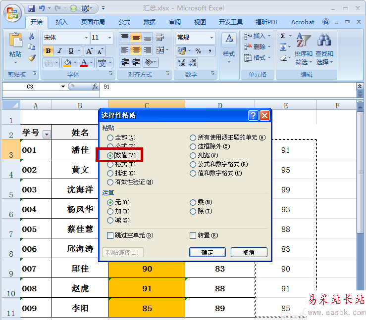 7、在對(duì)話框中選擇“數(shù)值”,然后點(diǎn)“確定”。