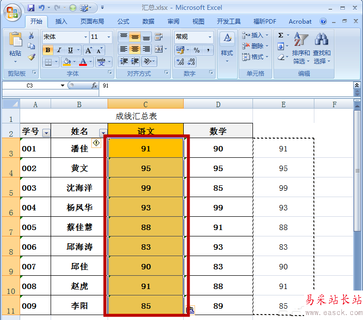 5、選中E3至E11單元格,按Ctrl+C,準(zhǔn)備復(fù)制。