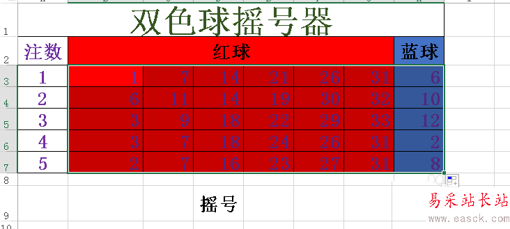 以上就是excel表格中制作雙色球搖號器的教程,希望大家喜歡,請繼續(xù)關(guān)注錯新站長站。