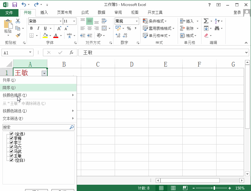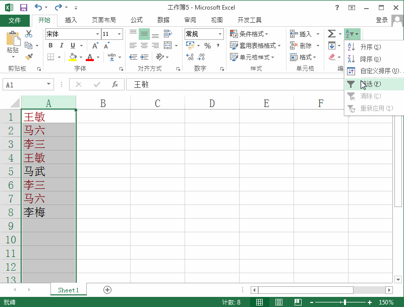 4、再在開始里找到排序與篩選選項,如圖所示: