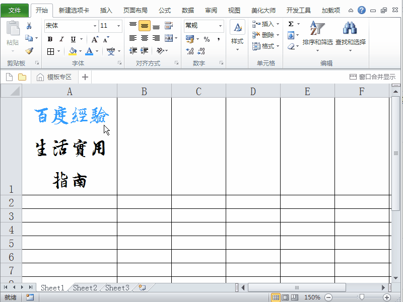 1、首先啟動excel2010,在sheet1中選擇所有的行和列,設置邊框為所有框線,調整單元格a1的大小。
