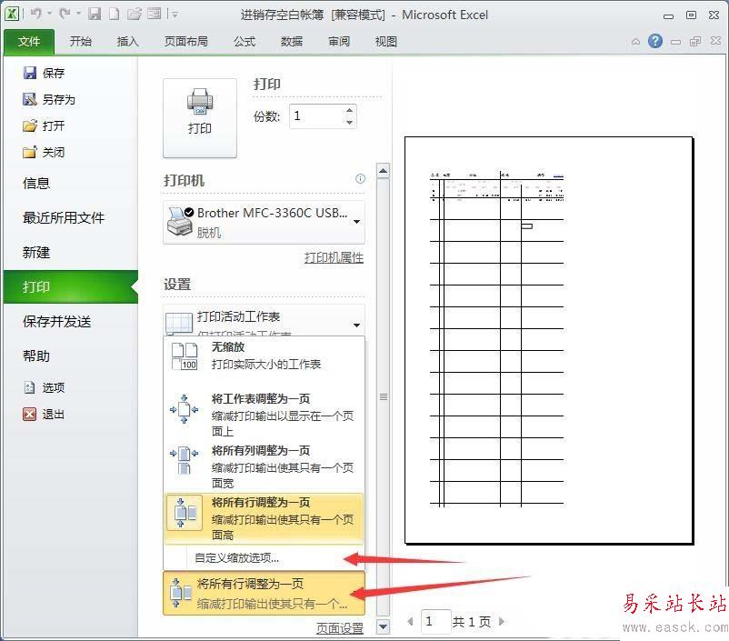 4、在預覽框看看,寬度就調整為一頁了。如果是行數想調為一頁,同樣點擊底部按鈕,選擇“將所有行調整為一頁”即可