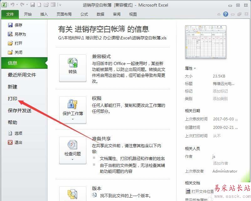 1、首先,打開要進行處理的Excel工作簿,點擊文件選項卡,在彈出的菜單中選擇“打印”。