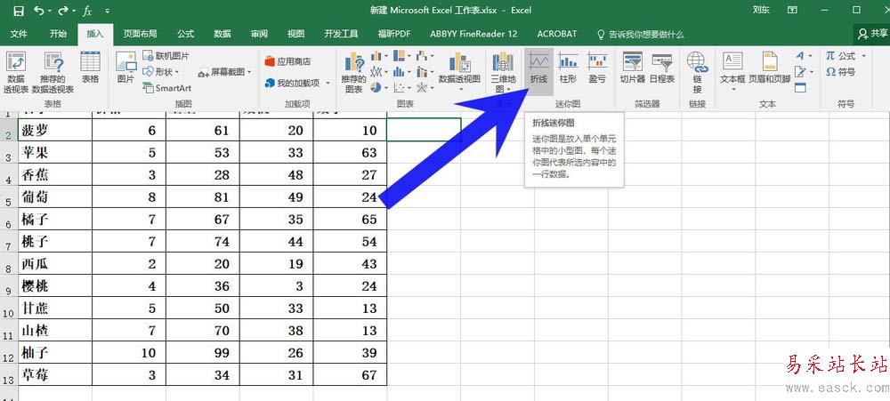 2、在選項卡中,我們選擇迷你族中的折線圖。