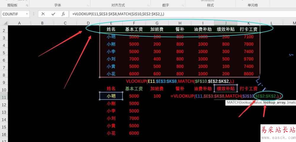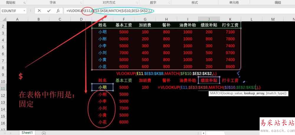 2、公式里面為什么有 【$】 這個符號,因為它在公式中起到的作用是 【固定】!方便下拉數據,而選擇的數據區域固定不變~