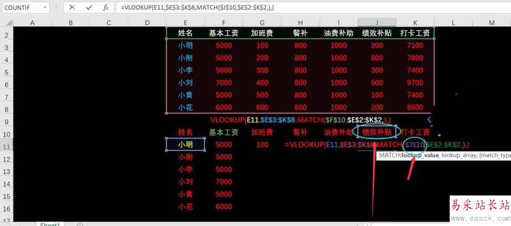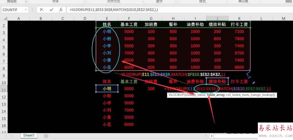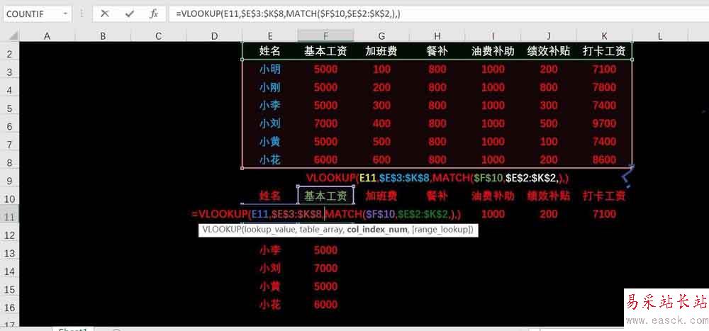 4、$E$3:$K$8, 這個在表格中代表的是,數據源 :數據源中所有姓名!