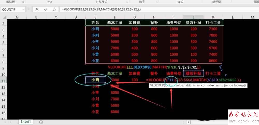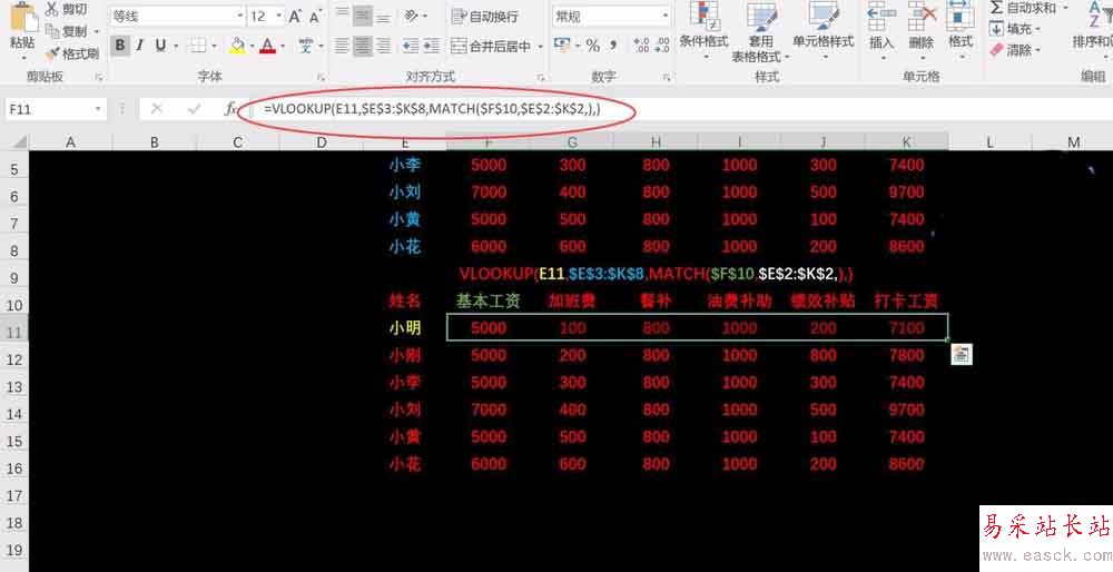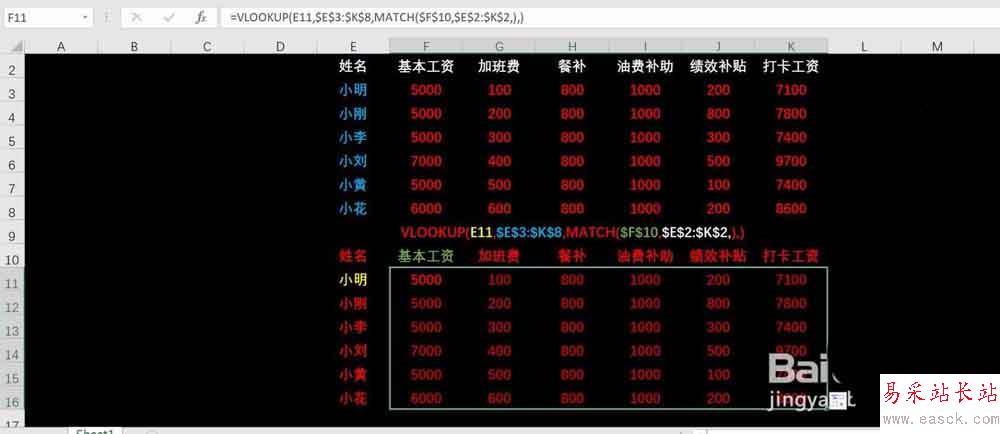 3、E11 在表格中代表的是 輸入值 姓名的位置!如果是更改這個明天那么所選數據也會相應的變動;