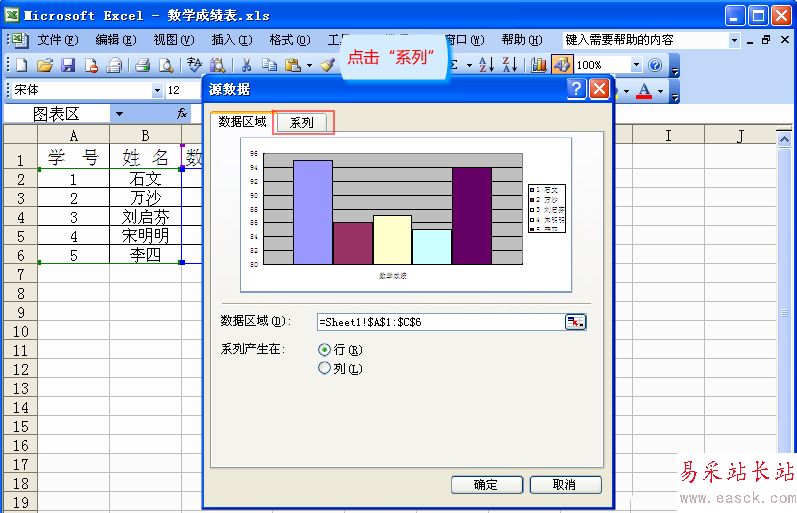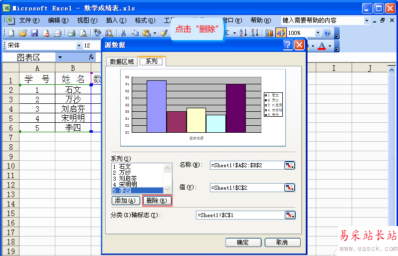 4、在系列欄中勾選某一項比如“李四”后,點擊“刪除”