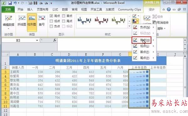 以上就是excel表格中迷你圖添加走勢表的教程,希望大家喜歡,請繼續關注錯新站長站。