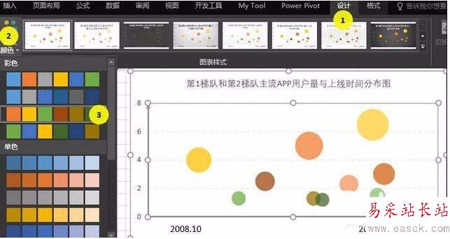 6、調色:可以使用自動依數據點著色;如果對自動填充的顏色還不滿意,還可以一個氣泡一個氣泡進行顏色設置。