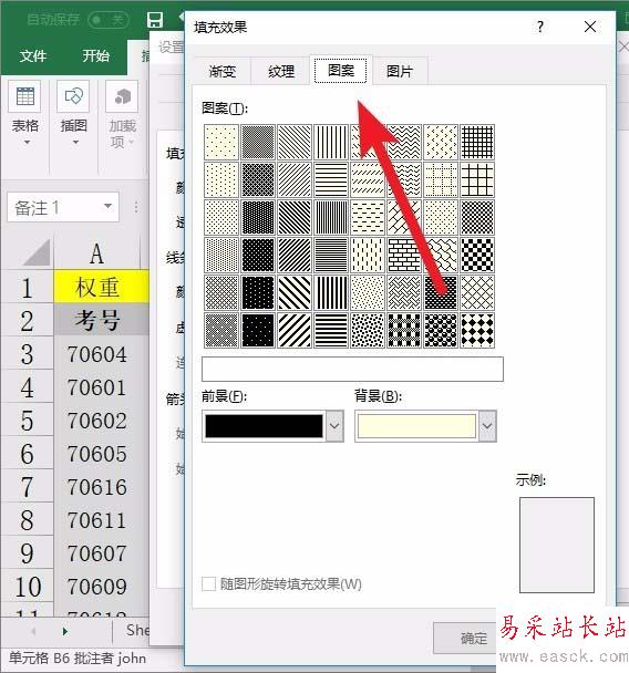 6、切換到圖案標簽中,并選擇自己喜歡的圖案。