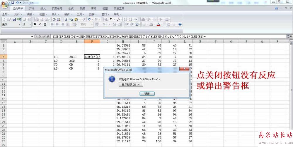 2、不僅公式改不了,計算結果全部一樣,而且點擊關閉表格沒有反應或是彈出“不能退出表格”的警告框。