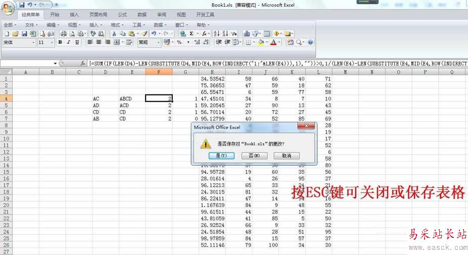 3、出現(xiàn)這樣的情況,先點擊確定退出警告框,然后按ESC鍵,退出數(shù)組公式編輯狀態(tài),即可保存或關閉表格。