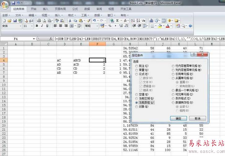 5、點擊“定位條件”,選擇“當前數(shù)組”,確定,然后再修改數(shù)組公式。