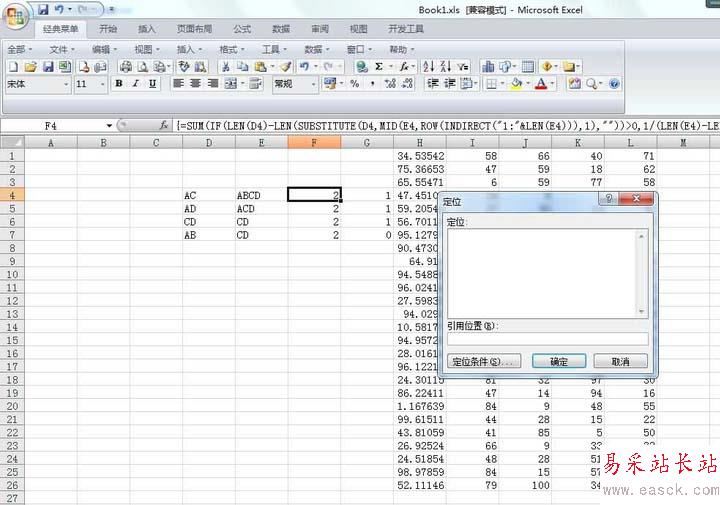 4、出現(xiàn)警告框是因為數(shù)組公式覆蓋了區(qū)域而不是單個單元格,要修改公式,應選擇公式覆蓋的整個區(qū)域,可按Ctrl+G,先打開定位對話框。
