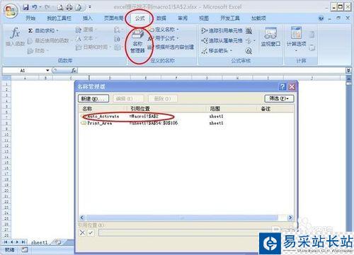 4、回到EXCEL界面,選擇“公式”--“名稱管理器”