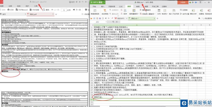 3.轉換文件與原文件(左)對比。注:PDF文件中,每頁轉換過來為一個獨立的工作表。
