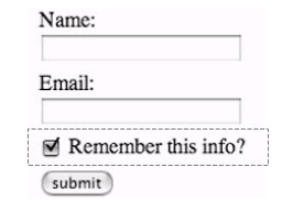 舉例來說,如果為表單加上一個多選框,讓使用者能夠選擇"記下這些信息",那么我們就能像這樣的使用<label>標簽了: