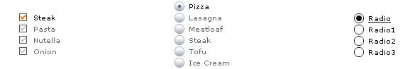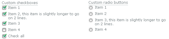 這個 JavaScript 和 CSS 組合可以隱藏表單中的 checkbox 和 radio button,并允許你使用 CSS 對 checkbox 與 radio button 的設(shè)置式樣模擬 checkbox 和 radio button。表單的功能不會改變,仍可以收集 checkbox 和 radio button 的數(shù)據(jù)值,checkbox 和 radio button 的標簽會觸發(fā)那些隱藏的對象。
