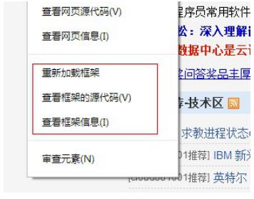 瀏覽頁面中的框架時,在框架頁面內 點擊右鍵,會多出框架的信息。
