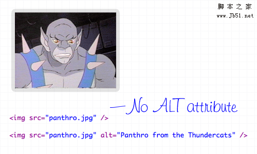 alt屬性是所有顯示在網頁中圖片的必須屬性,它能夠幫助人們知道這是什么圖片.或者在網速比較慢的時候顯示圖片的含義是什么.它的主要目的是,說 明圖片的含義,想這樣的說明 alt=”image”是很糟糕的.如果,有些圖片的確只是裝飾作用而已,那么建議你寫成 alt=”".