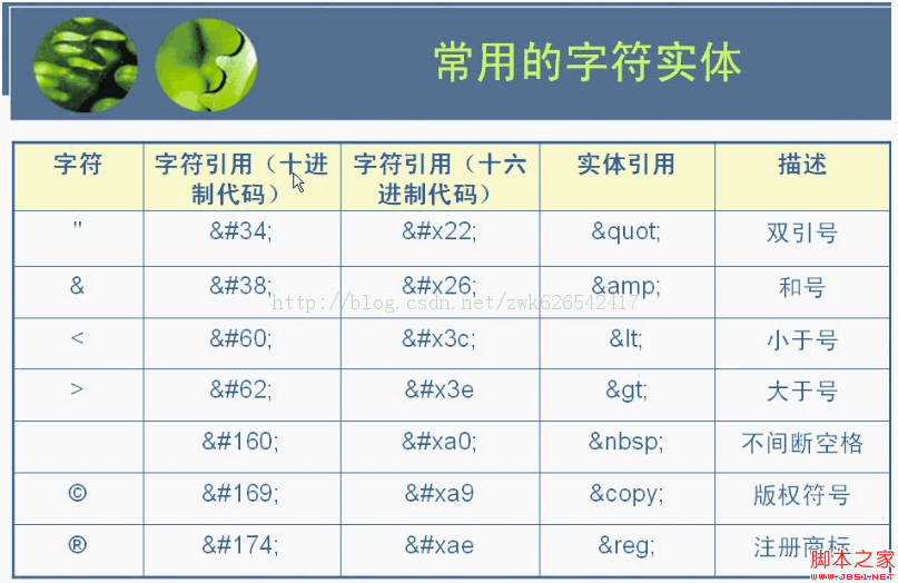 特殊字符包括字符引用和實體引用,下面我們將常用的進行總結