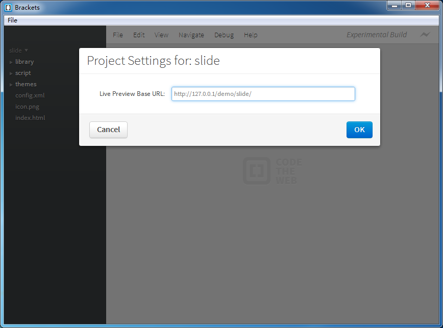 如上圖,設置為http://127.0.0.1/demo/slide時,在瀏覽器預覽時,會通過web地址打開相應的頁面。