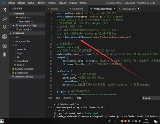 1,我們首先輸入 npm i html-webpack-plugin 安裝該插件