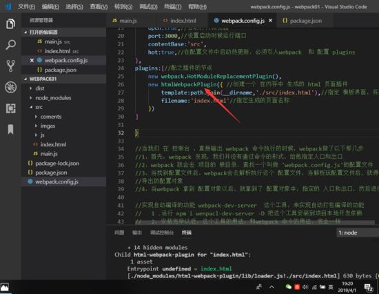 打包的時候,未打包分為兩個文件,一個本地磁盤文件,一個是內存中的文件,這樣一來是不是特別麻煩,面對這個問題我們又了方法解決,html-webpack-plugin 安裝這個插件
