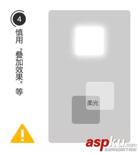 4、視覺上,慎用“光線疊加效果”或PS里面的“圖層樣式”效果。
