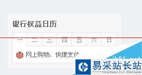 4、綁定完銀行卡我們回到剛才我的賬戶>我的銀行卡頁面,在右邊的銀行權(quán)益日歷,可以看到一些快捷支付優(yōu)惠信息,選擇周一~周日,可以看到每天的快捷支付優(yōu)惠。