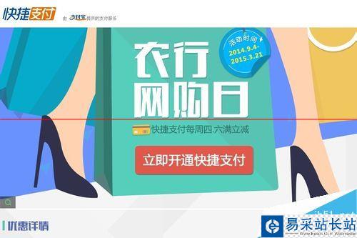 5、點(diǎn)擊“網(wǎng)上購物、快捷支付”超鏈接,進(jìn)入快捷支付頁面。在此頁面可以看到各大銀行的優(yōu)惠信息。