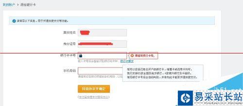3、如圖進(jìn)入添加銀行卡頁面,姓名和身份證號(hào)默認(rèn)填寫完成,你只需要填寫銀行卡卡號(hào)和銀行卡預(yù)留的手機(jī)號(hào),點(diǎn)擊同意協(xié)議并確定,綁定銀行卡。(注意:快捷支付的銀行卡無需開通網(wǎng)銀,銀行卡必須是本人的銀行卡)