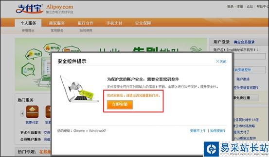 經(jīng)常使用淘寶購物的童鞋,應(yīng)該知道支付寶安全控件是必須安裝的,不然賬號登陸不了。這是支付寶官方為了密碼輸入安全弄的一個(gè)瀏覽器安全插件。