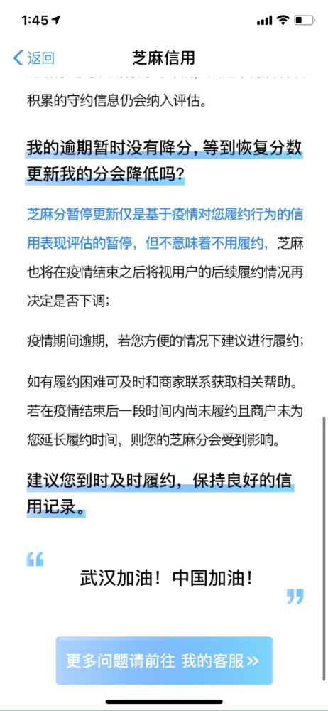 但支付寶強調,如果疫情期間如有違約行為,仍會被記錄,在疫情結束后將視用戶的后續履行情況再決定是否下調。