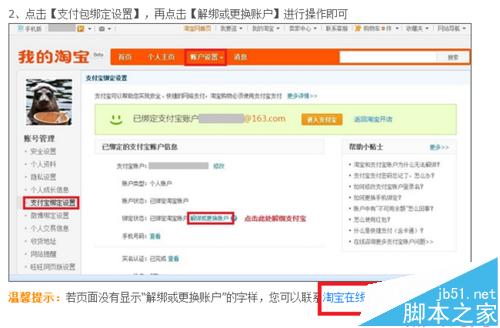 7、然后,解綁,再綁定你心水的支付寶賬號——這些比較簡單,按照淘寶的幫助中心提示進行操作就行了。