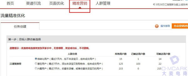 推薦發(fā)放方式:利用江湖策的人群細分功能,針對不同的人群給予不同力度的優(yōu)惠券
