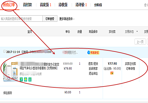 退款/退貨方法:如圖,點(diǎn)擊所有訂單,找到需要退款/退貨的寶貝。退款/退貨方法主要有兩種:商家主動(dòng)退款;商家被動(dòng)退款(投訴)。