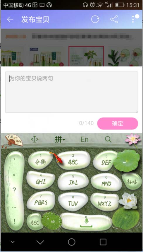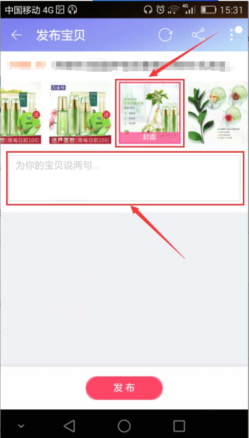 3、頁面跳轉到【分布寶貝】頁面后,選擇推廣到愛逛街欄目的主圖,一般系統會推薦寶貝的主圖(建議選擇美觀,主題居中明確的圖片);然后,點擊下面的輸入框,輸入推薦寶貝的理由,注意以第一人稱為宜,內容為自己的使用心得,不要各種形容詞無效堆疊,要有實際內容。
