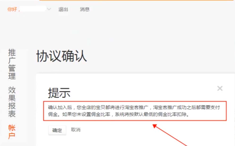 4、簽署支付寶代扣協議,簽署后即可參加淘寶客推廣