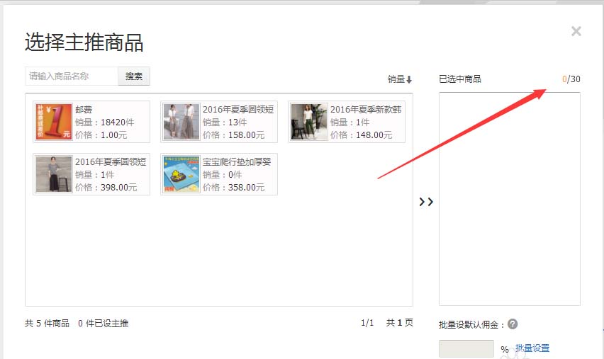 12、選擇單品主推寶貝,通用計劃可以選用30個主推單品,其他計劃主推數量不同。